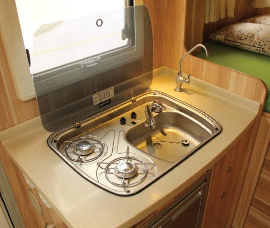 料理台紧靠车窗,在阳光下享受烹调的乐趣