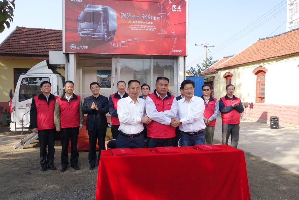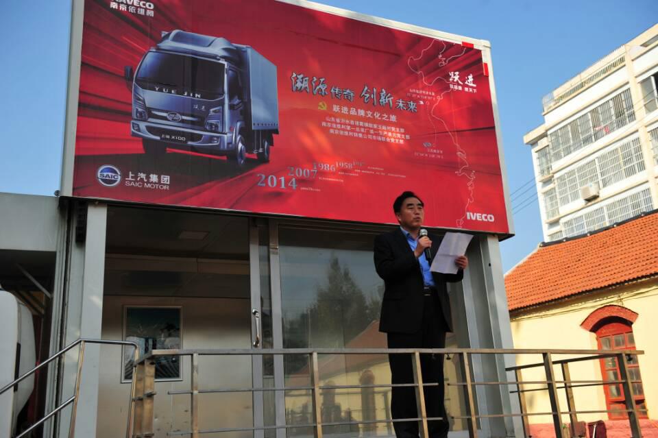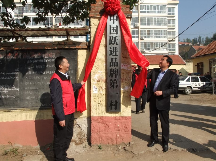 (南京依维柯跃进品牌总监张陵与山东省临沂市沂水县人民政府王副县长为“中国跃进品牌第一村”揭幕)
