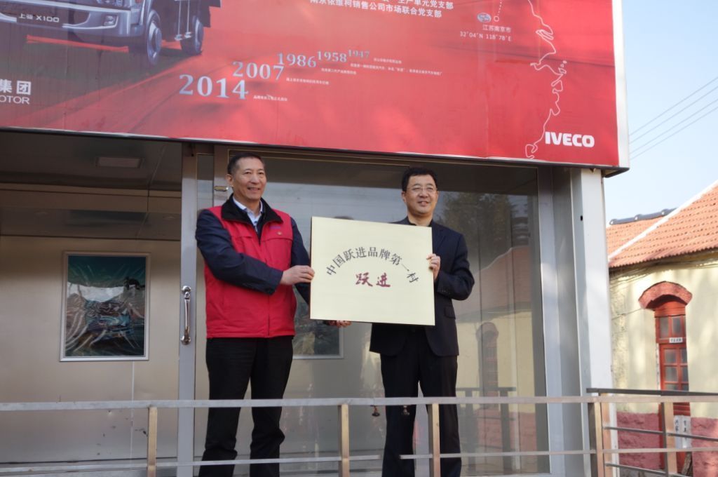 (南京依维柯跃进品牌总监张陵授予“中国跃进品牌第一村”铜牌)