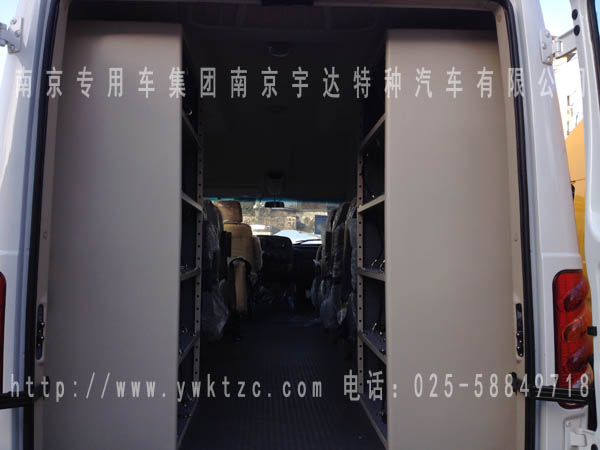 5、在车内后部左侧放呼吸机柜1只,柜内有仪器固定扎带及挡带,柜内为软毯边面;