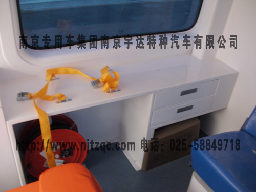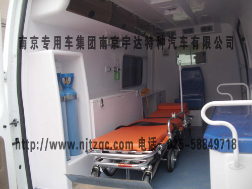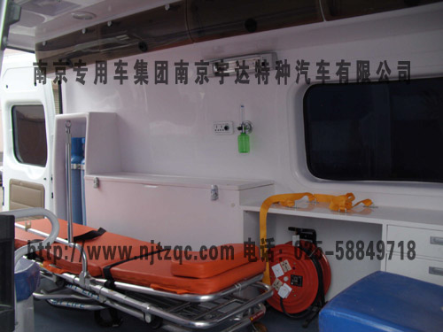 车内设置药品仪器柜,配置部分救护用设备仪器和担架。车顶安装医疗救护用标志灯具。选