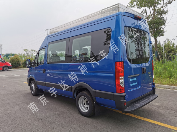 备注:车上装备有工作机柜、电视、指挥车专用工作台等服务办公装置.选装电动门、上掀门、上掀窗,可不选装高位制动灯.选不装工作平台、换气扇、喇叭、LED显示屏,高度:2861mm.选不装顶部空调及高杆照明灯,高度:2711mm.ABS系统控制器型号:BOSCH ABS9, ABS系统控制器生产企业:BOSCH公司.发动机最大净功率105kW.油耗申报值为10.5L/100km.