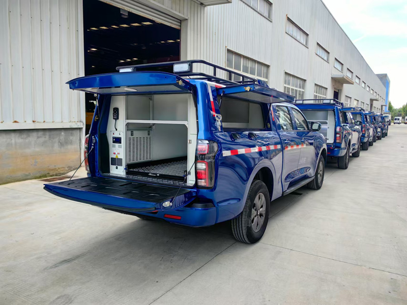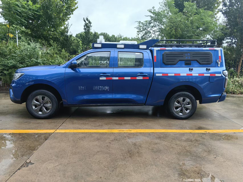 1.ABS型号及生产企业:ESP9/博世汽车部件(苏州)有限公司.发动机净功率值为140kW;2.专用装置及功能描述:车内设置水文设备柜,水文检测设备,主要用于水文检测服务;3.选装升降照明设备,车顶行李架,车顶平台,车顶摄像云台,选装涉水喉,尾部拖车钩.车厢顶部封闭且不可开启;选装车顶行李架时高度为2030mm;选装升降照明设备时高度为2120mm;选装车顶摄像云台时高度为2240mm,4.选装ETC装置;5.车顶照明灯仅在驻车状态下使用。